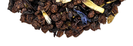 Infusion: Dark, coppery, with blue cornflower petals for added visual charm